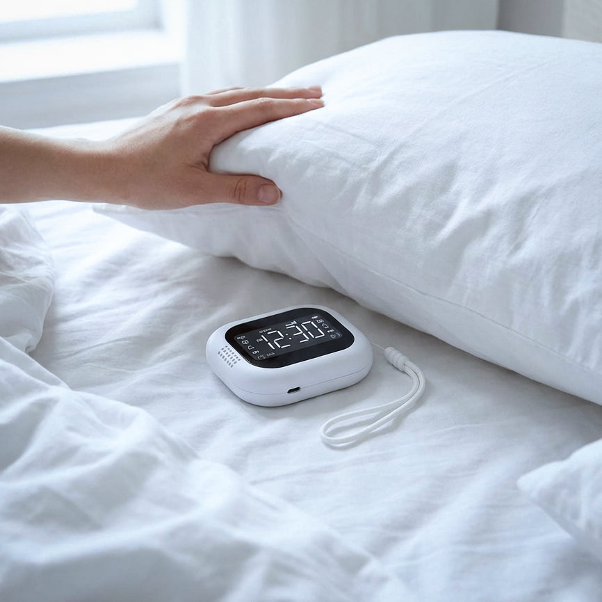 A silent, vibration-only alarm designed to wake you gently without sound — ideal for shared bedrooms, light sleepers and anyone who wants a calmer, more discreet start to the day.