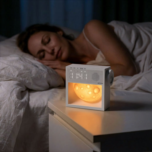 Many bedside setups rely on multiple devices. A phone for alarms, a lamp for light, another device for sound. This often adds stimulation where calm is needed most.