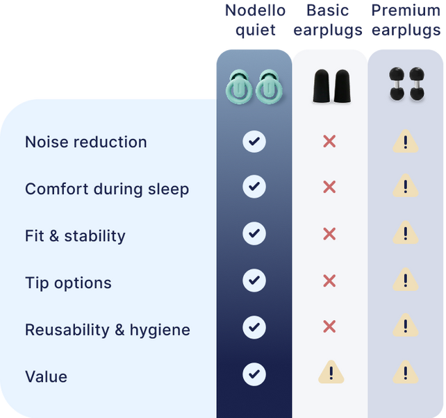 Nodello Quiet is designed specifically for sleep. Multiple sizes and two different tip types are included to help you find a comfortable fit that stays secure through the night.